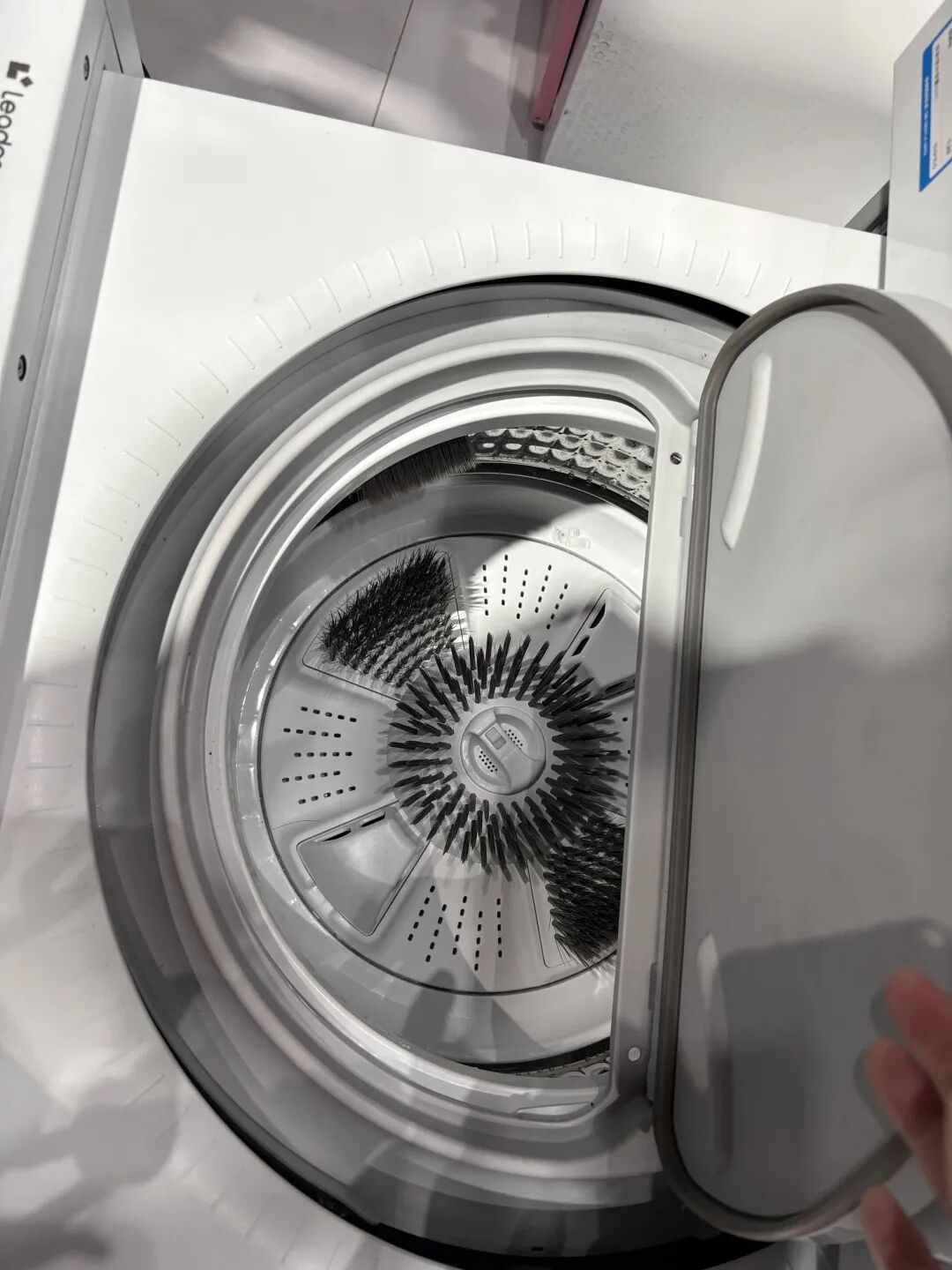 接下来懒人的福音来了!海尔统帅的洗鞋机是已经上市的产品,下面的部分是抽屉的波轮+毛刷,上面的洗衣机只要尺寸一样、放哪个都行。
